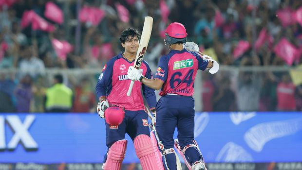 Having struck his first ball on IPL debut for six against Lucknow Super Giants last weekend, the teenaged opener smoked Mohammed Siraj over the ropes to signal his intentions. With Yashasvi Jaiswal also striking the ball well, RR crossed 50 in the fourth over and were 87 after the Powerplay.